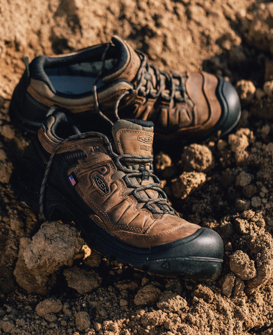 Our #1 hiking shoe is now jobsite ready. Glue-free fused construction for more durability. lightweight carbon toe for protection. plus long-lasting cushioning for day-in/day-out comfort.