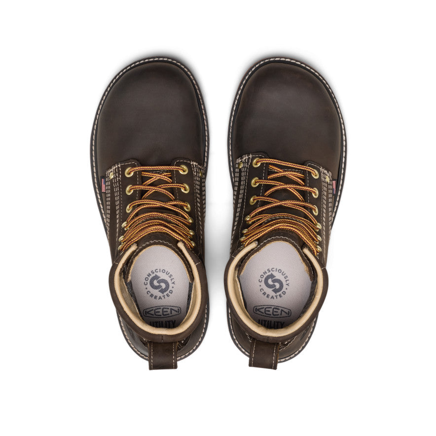 Traditions evolve with this 6 American Built waterproof style. featuring our ultra-comfortable fit. premium leather from LWG-certified tanneries. 90° heel for grip. and air-infused midsole support.